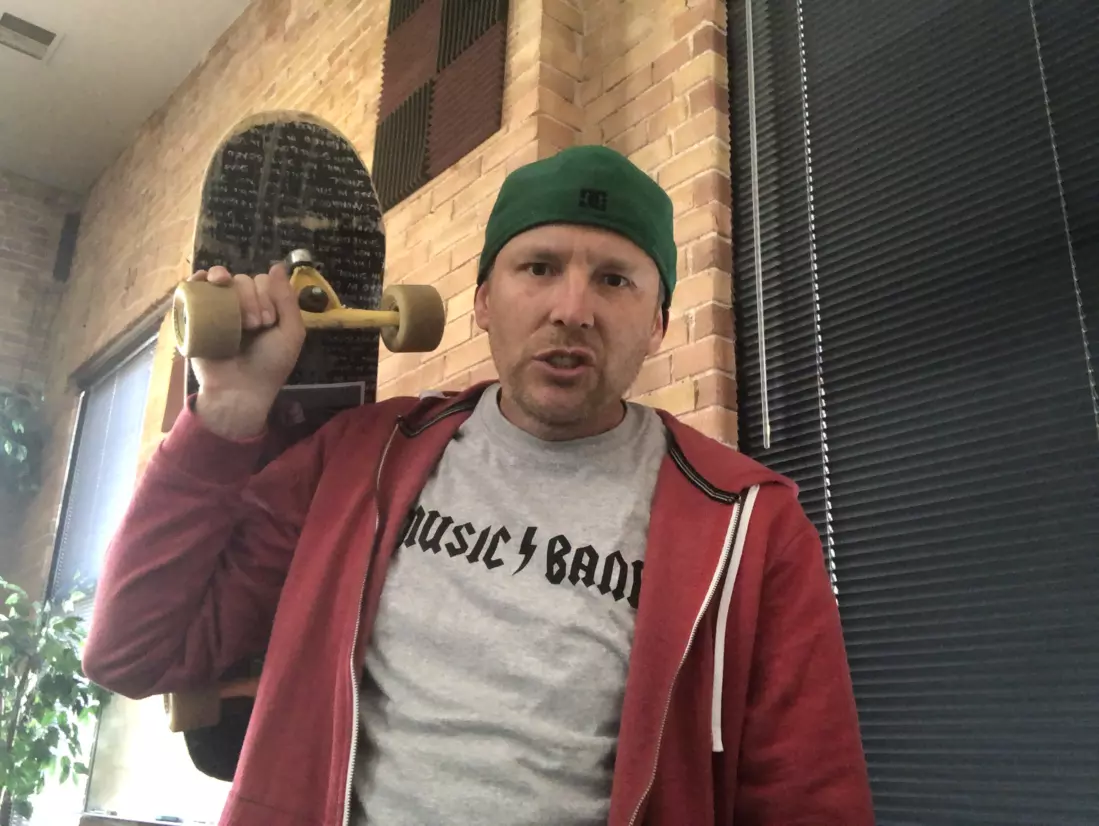В качестве доказательства показывают флэшбек, где на тот момент 55-летний персонаж Бушеми старается сойти за своего в компании подростков. Всё в образе детектива показывает, насколько плохая у него маскировка: кепка задом наперёд, сразу два скейтборда в руках и футболка с принтом «Music band». В таком виде он подходит к школьникам и говорит: «How Do You Do, Fellow Kids?» («Как дела, детишки?»).